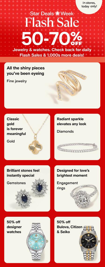 Today only! Shop in store and get 50-70% off jewelry & watches.