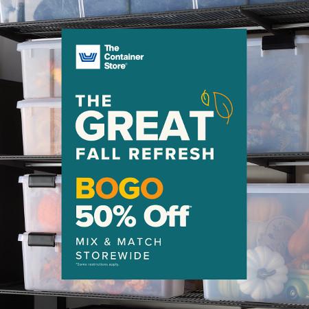 Shop The Container Store for buy one, get one 50% off deals to refresh your space for fall. Mix and match your favorite solutions to get every space ready for the season’s big games and gatherings. Shop storewide and save! But hurry, it’s only for a limited time.