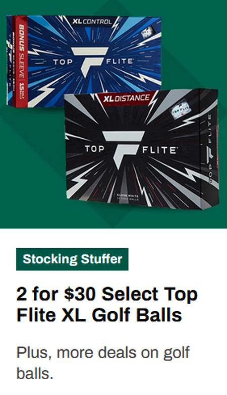 Don't wait! Shop in store and get 2 for $30 select Top Flite XL golf balls. Plus, more deals on golf balls.