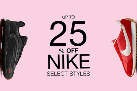 Hurry in and save! Shop in store and take up to 25% off on Nike select styles.