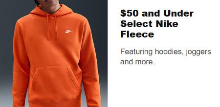Hurry in & save! Shop in store and get select Nike fleece for $50 and under.