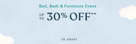 Stop by and take up to 30% off on bed, bath & furniture in store for a limited time.