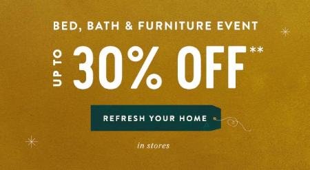 Stop by and take up to 30% off on bed, bath & furniture in store for a limited time.