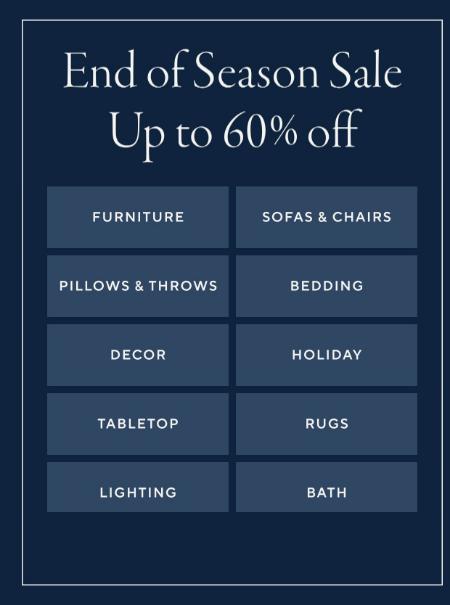 Limited time only! Shop in store and get up to 60% off on end of season sale.
