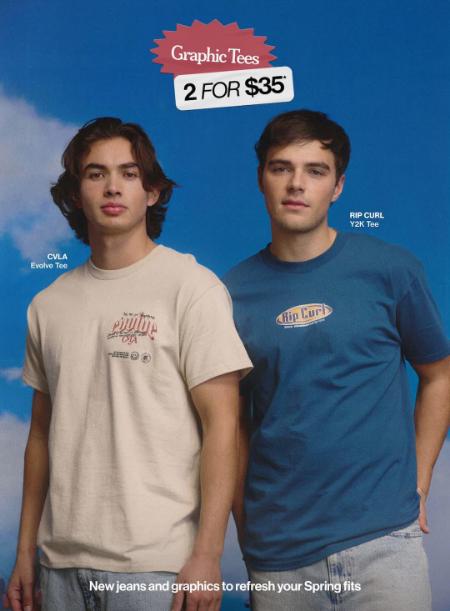 Stop by and get 2 graphic tees for $35 in store for a limited time.
