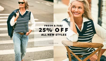 25% Off All New Styles. Full-Price Styles. Offer valid 01/08/2026 - 01/12/2026. Offer valid in U.S. Chico's Stores (excluding Chico's Outlets and Chico's Off The Rack stores) at chicos.com and by phone 888.855.4986. Prices as Marked.