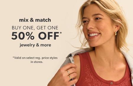 Buy One, Get One 50% off Jewelry and More
