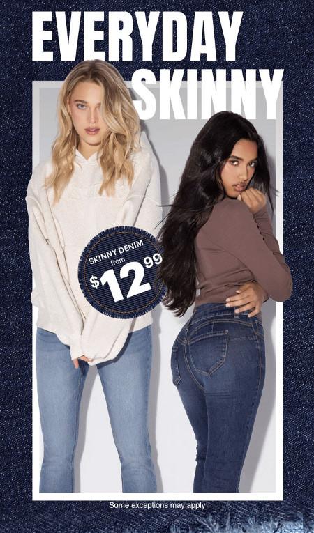 Get it now! Shop in store and get skinny denim from $12.99.