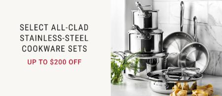 Up to $200 Off Select All-Clad Stainless-Steel Cookware Sets.
