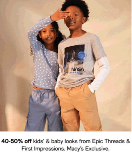 Hurry in & save! Shop in store and get 40-50% off kids' & baby looks from Epic Threads & First Impressions.