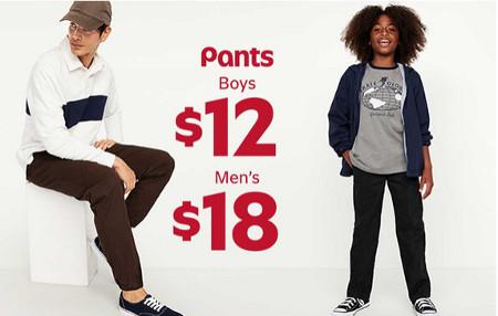 Don't wait! Shop in store and get men's pants for $16 & $12 for boys.