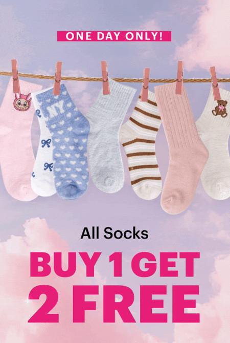One day only! Shop in store and get all socks at buy 1, get 2 free.