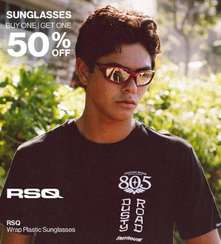 Shop in store and buy one, get one 50% off sunglasses for a limited time.